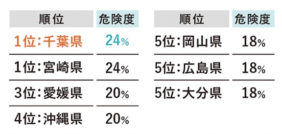 岡山県は温暖と言われていますが、危険度ランキングだと上位なんです。